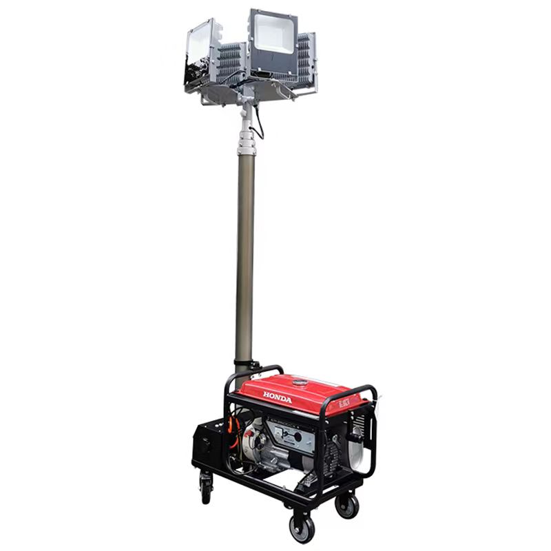 灯具主要由灯盘组件、升降杆、气泵、发电机、控制面板、底座等部分组成,升降杆底部具有手动紧急气压泄放装置,适用于铁路、电业、公安、消防、油田、冶金、石化企业等各种大型施工作业、事故抢修、抢险救灾等现场作移动照明。